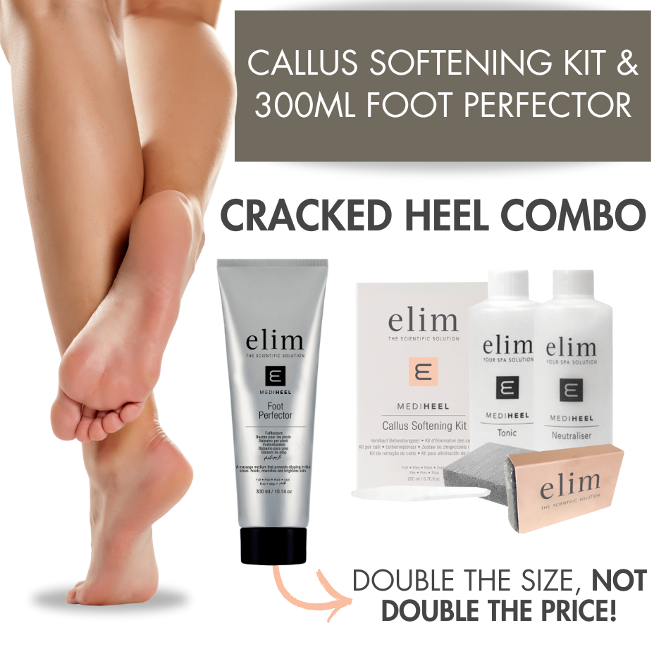 RRP 133.00The Elim Callus Softening Kit and Foot Perfector Combo is the perfect combination to get rid of calluses and cracked heels in less than 10 minutes! Designed for effective home use, Whilst the non-slip Foot Perfector provides luxurious moisturization.WHAT MAKES ME DIFFERENT?